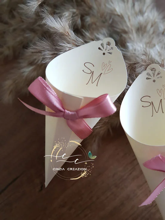 coni portariso matrimonio iniziali sposi e cuoricini