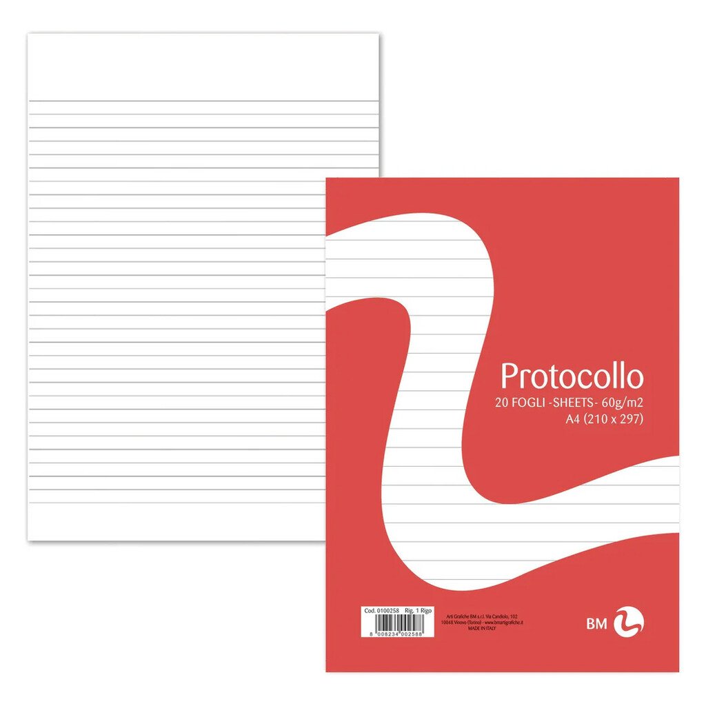 Fogli protocollo BM: rigatura commerciale, 60 g/mq, cf. da 200 fg.