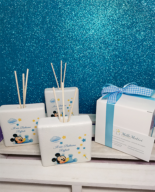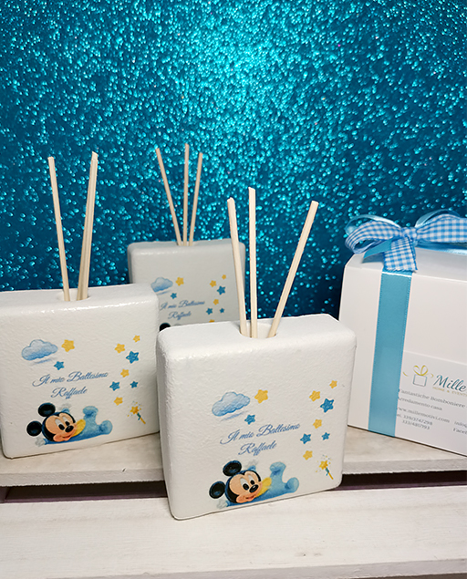 Bomboniera profumatore Topolino baby Disney. Personalizzabile con il vostro nome, o frase. Adatto per bomboniere battesimo, nascita, compleanno. Una bomboniera unica ed originale.